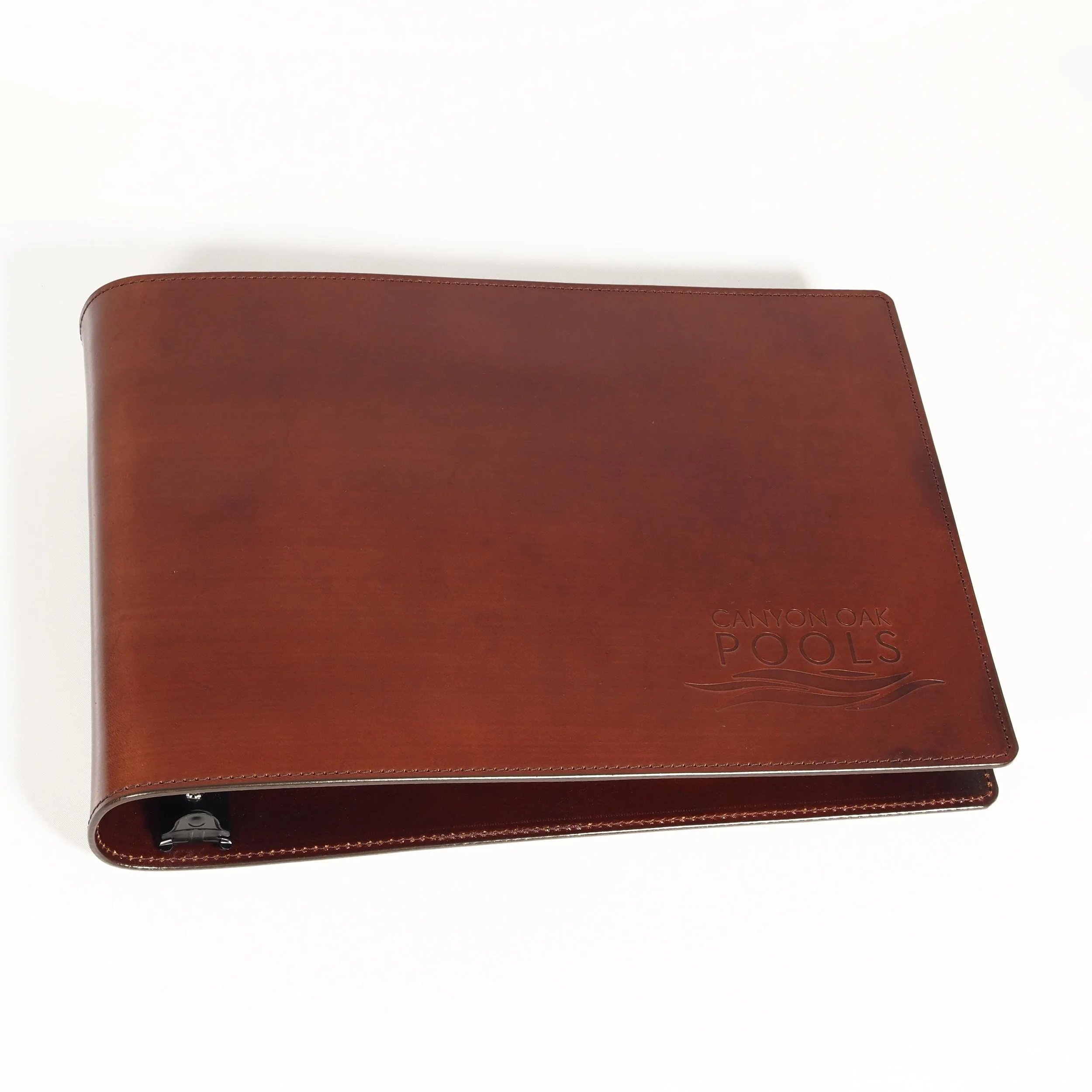 I construct this binder using Vachetta leather, a full grain, veg-tanned cowhide that is tanned in Tuscany, Italy. This superior quality leather is silky to the touch and has a light matte finish that allows the natural character of these flawless hides to show through.