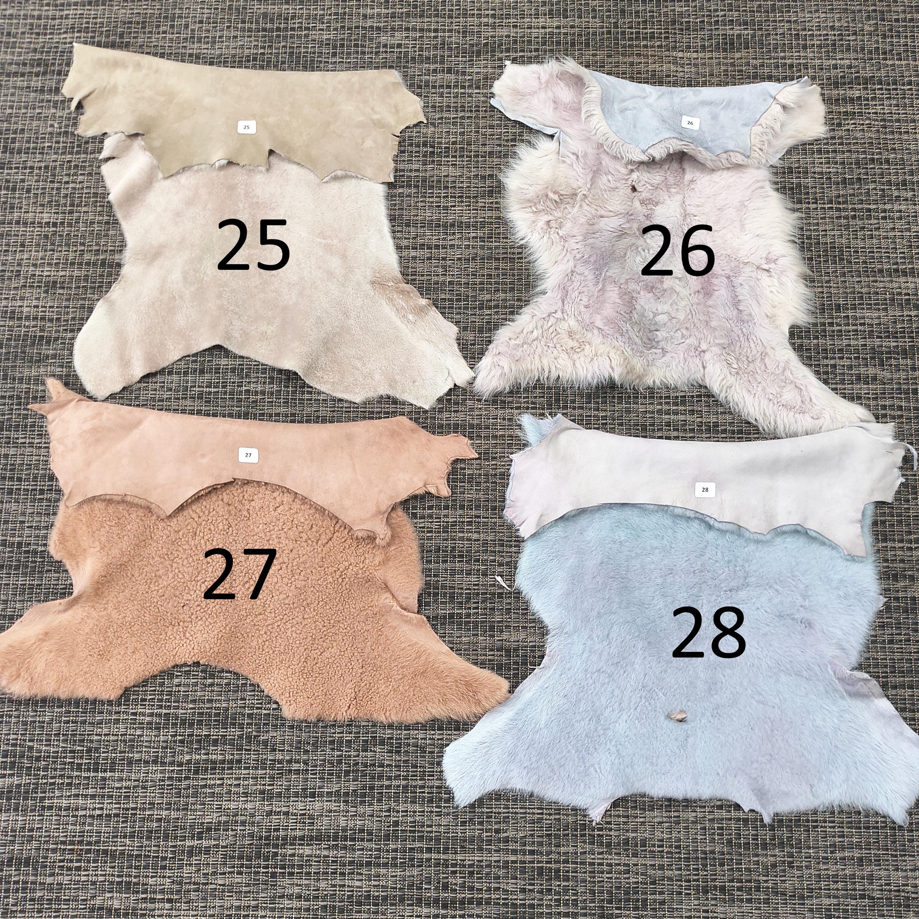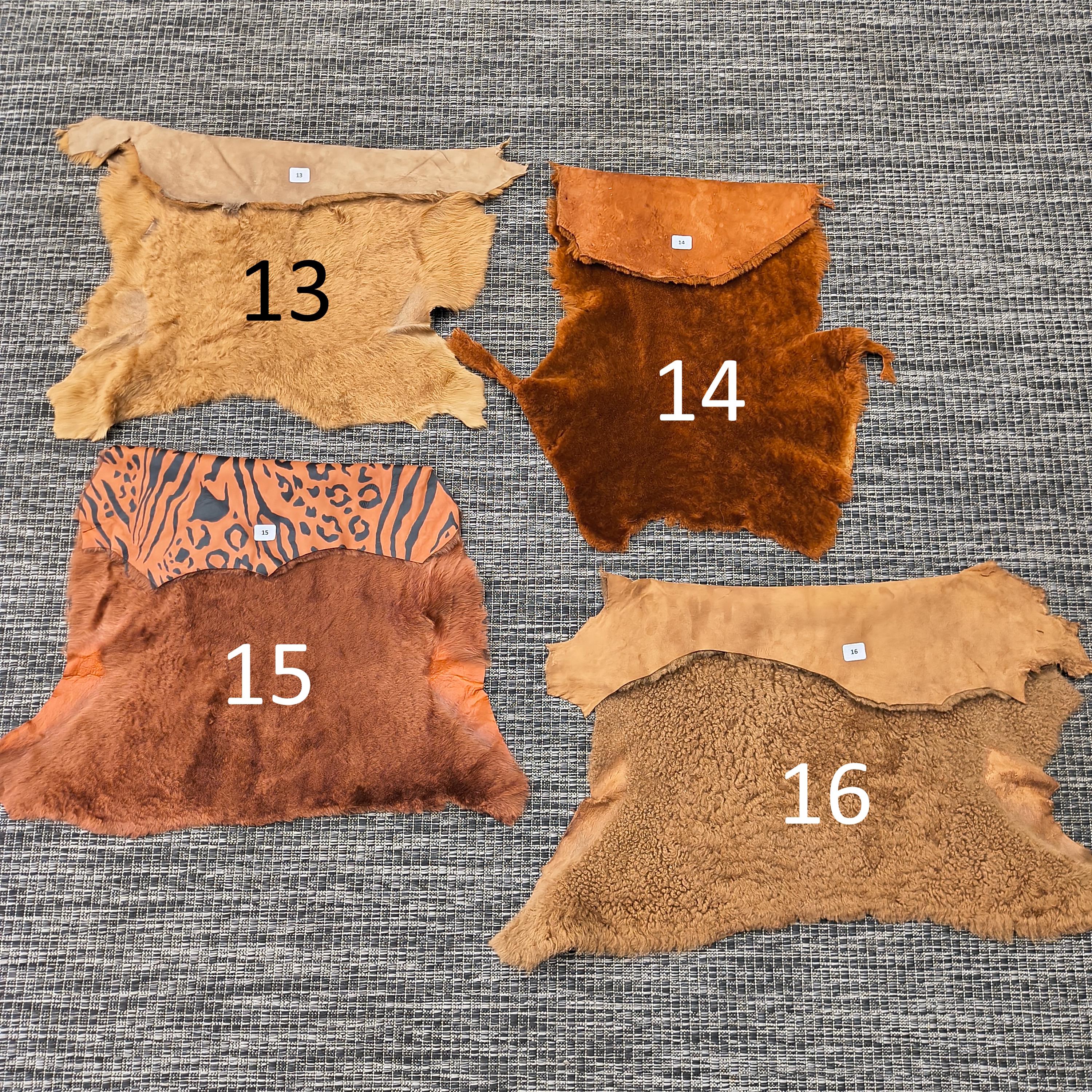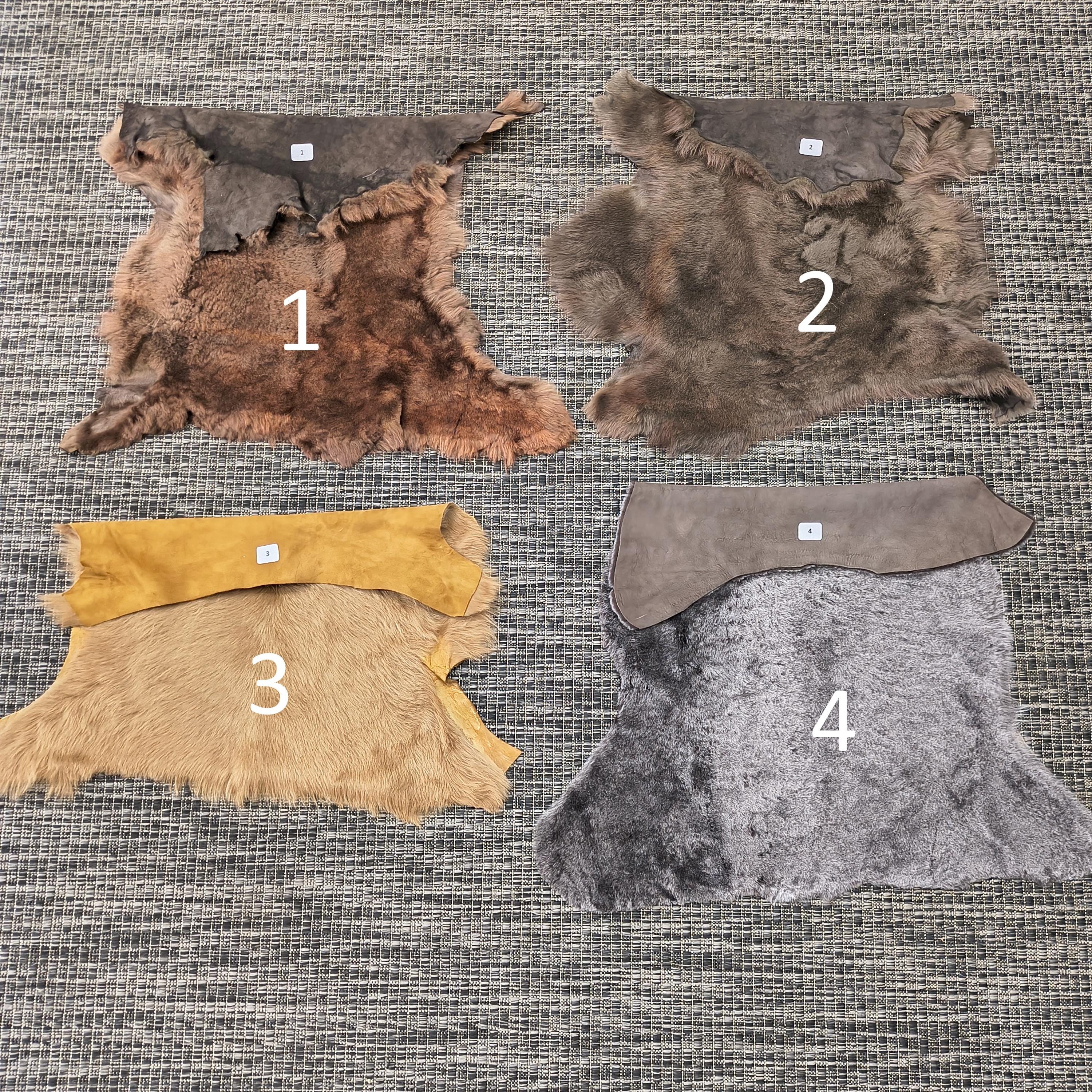 Small Sheepskin Hides: I have various colors and textures to choose from. These are genuine sheepskins; I do not work with any faux furs or leathers. Choose the sheepskin you want from the number in the photos; the hide you see is the actual hide you will receive.