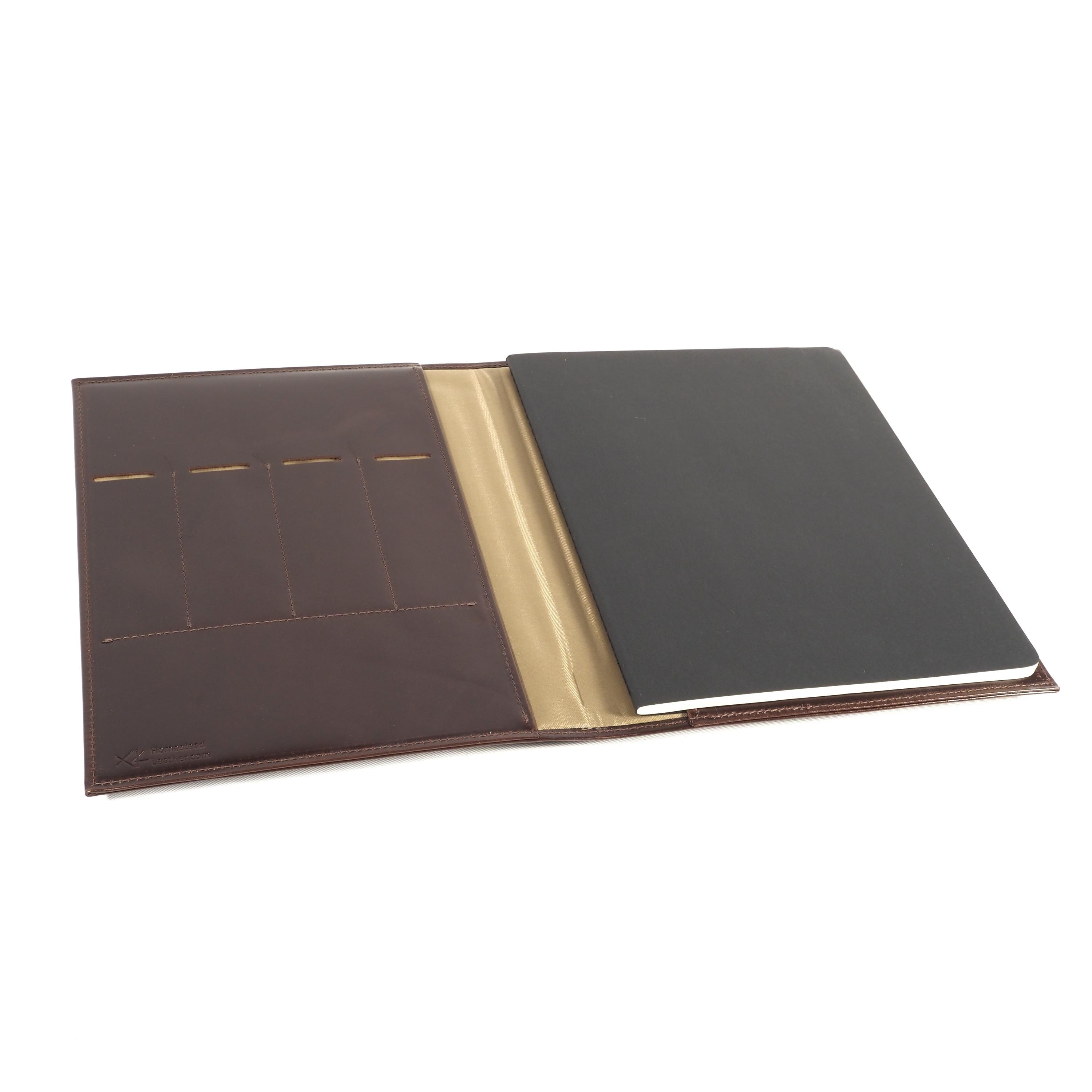 Moleskine makes great quality journals, so why not get a great quality cover to match? I designed these covers to be clean, efficient and useful. I use fine quality leathers and line the inside throughout for a finished feel. I added pen slots inside as well as a space for loose sheets. You will be impressed at the quality of these journals, and they will definitely last for decades of use. Because I strive to make the best quality products I can, I guarantee my work for life.